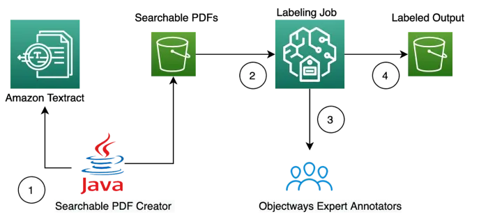 We demonstrate how you can use Objectways developed PDF annotation tool label PDF documents for Named Entity Recognition(NER) labeling. The annotation tool provides labeling entities, relationships among entities, overlapping entities, document classification along with a custom notes field all in a single annotation UI. The tool is really easy to configure and compatible with SageMaker GroundTruth. It also supports multi-page annotation. The input to the annotation tool is searchable PDF which can be easily created using a freely available utility on GitHub. The utility uses Amazon Textract to OCR and then creates a searchable PDF as the output.
