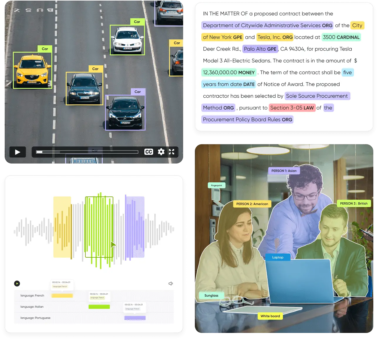 Annotate video frames with labels for AI tasks like object tracking, activity recognition, and scene understanding.
